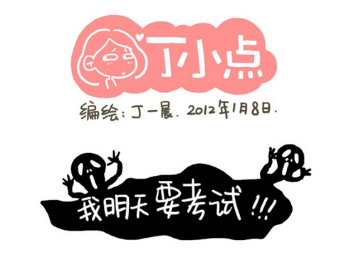原告丁一晨是位职业漫画家,曾以“丁小点”为主角出版过《好想回到小时候》、《走你,小五》等漫画作品。2012年1月8日,丁一晨在其新浪个人微博中发布了一组以丁小点为主角的“我!明!天!要!考!试!!!!”漫画(以下简称“考试漫画”)。